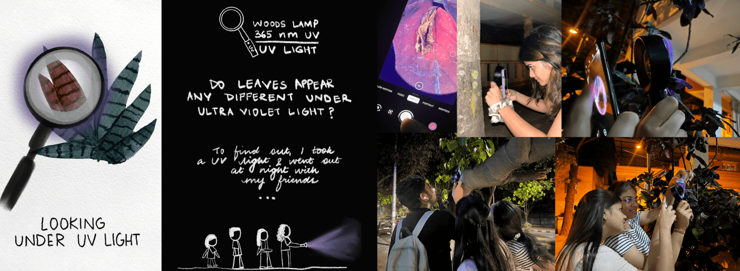 Looking under the UV light to see how the pigmentation in the leaves appears so different under differenting light conditions.