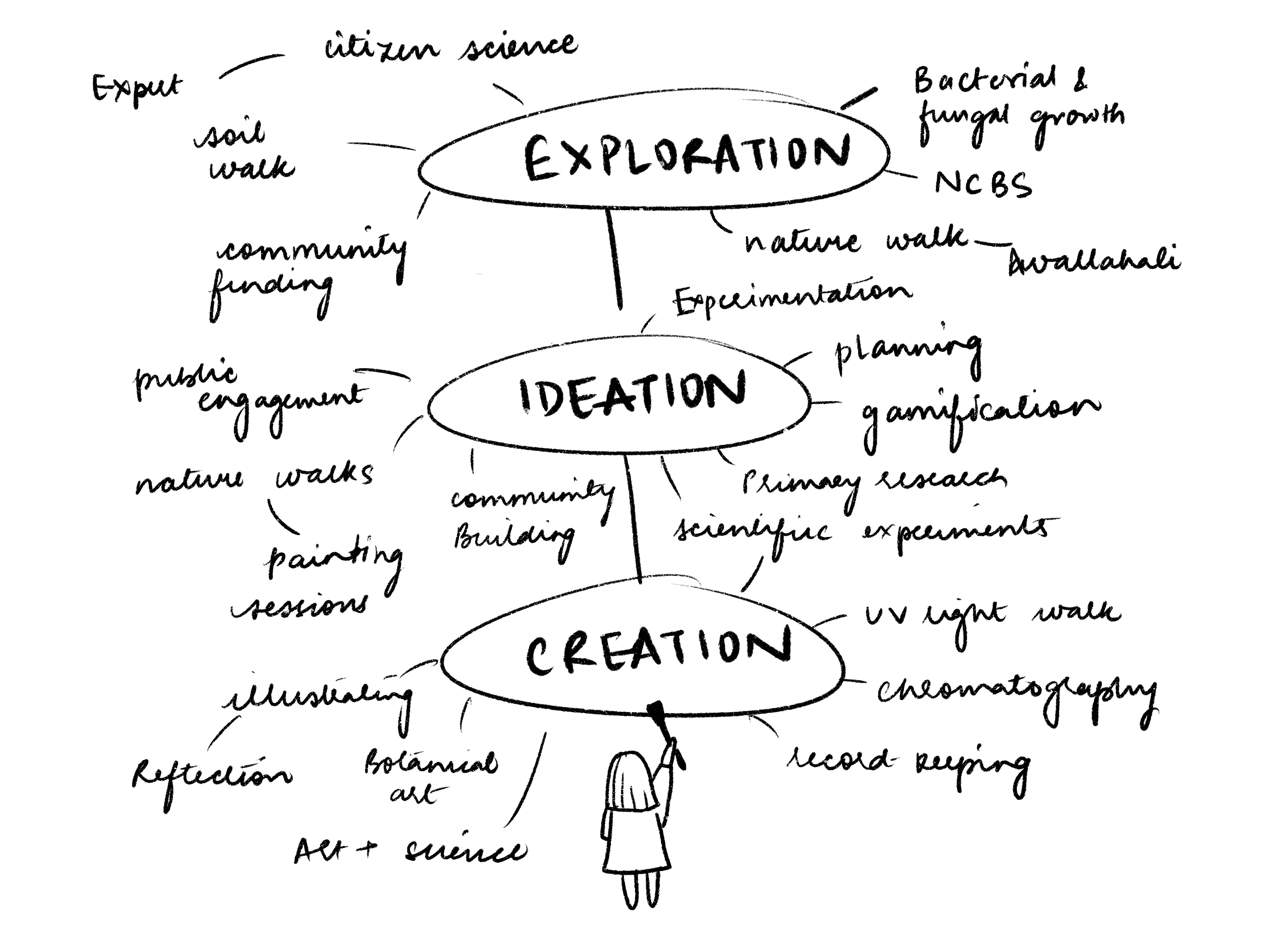 For my illustrated book, I designed a tiny character of myself who takes the reader through the journey of my explorations. The tone of the book is very engaging and it aims to provoke creative thinking.